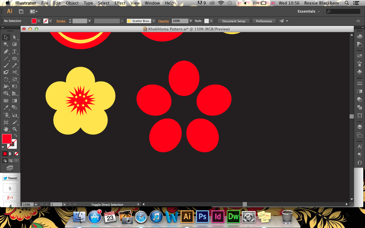 My final business cards incorporated quite a lot of the Khokhloma pattern, with a simple contact side to the card so that it wasn't too overwhelming. These will be printed onto a textured, white stock with some pastel coloured stock sandwiched in-between each side of the card. The pastel colours will be similar to the colours found in the logo!